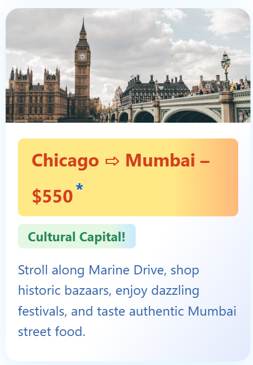 What impressed me most was their service after booking. They stayed in touch, helped with seat selection, and answered all my travel questions quickly. Even when the airline made a small schedule change, they handled everything for me. It’s rare to find this level of service and care these days